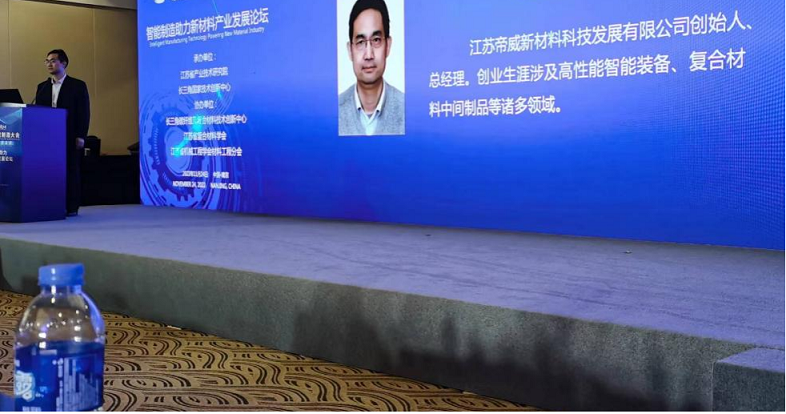 江苏帝威新材料科技发展有限公司董事长王至昶受邀在2022世界智能制造大会上作报告。本届大会11月23日~25日在南京国际博览中心召开,复合材料分论坛以“智能制造助力新材料产业发展”为主题,由江苏省产业技术研究院/长三角国家技术创新中心联合国际智能制造联盟(筹)、中国科协智能制造学会联合体等28家智能制造领域专业机构共同承办。王至昶发言的主题为《碳纤维复合材料中间制品对高端工艺技术装备的需求和挑战》,报告围绕基础材料工艺技术装备的发展现状、“一体化”阶段性工艺技术装备范例介绍、帝威公司在装备方面所做的工作以及相关建议展开,报告指出,装备技术是基石,分段、用工程化思维构建连续化生产技术,逐步实现复材制造由机器取代人工是碳纤维复材的重要发展趋势,报告受到业内外一致好评。